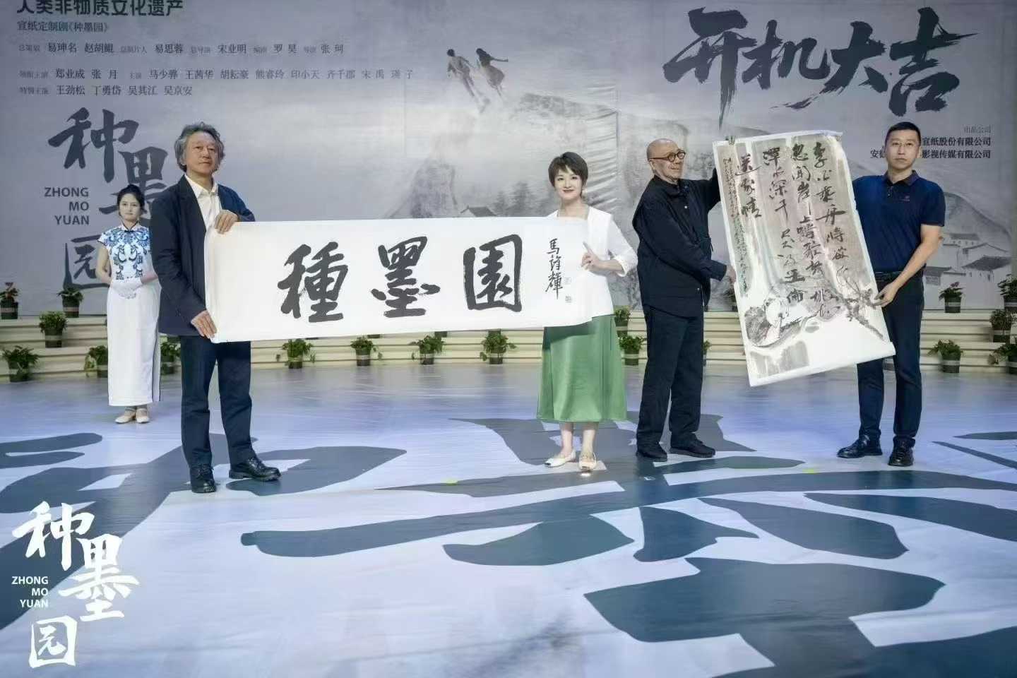 儀式上,省市縣領(lǐng)導(dǎo)和出品方、主創(chuàng)人員代表等共同為攝影機(jī)揭下紅布,宣布開機(jī)。八位書畫藝術(shù)家捐贈了書畫作品。 朱訓(xùn)義在致辭中說,電視劇《種墨園》是深入貫徹落實(shí)習(xí)近平總書記考察安徽重要講話精神的具體實(shí)踐。期待通過各方努力,將電視劇《種墨園》打造成“有溫度、有厚度、有力度”的精品,既展現(xiàn)宣紙文化魅力、傳遞宣城山水之美,又彰顯時代氣象和創(chuàng)新精神,實(shí)現(xiàn)“一部劇帶火一座城”的文旅融合愿景,讓安徽的文化符號成為全國觀眾的“詩與遠(yuǎn)方”。 出品方、劇組人員代表也作了致辭。 電視劇《種墨園》旨在通過影視藝術(shù)形式,挖掘宣紙背后的歷史淵源與人文精神,展現(xiàn)傳統(tǒng)文化在當(dāng)代的傳承與創(chuàng)新。開機(jī)儀式后,《種墨園》劇組將在涇縣等地正式拍攝,進(jìn)一步挖掘當(dāng)?shù)匚幕Y源,將涇縣及宣城的自然風(fēng)光、人文底蘊(yùn)與劇情深度融合,讓觀眾在欣賞故事的同時,領(lǐng)略宣紙文化的千年韻味,感受中華優(yōu)秀傳統(tǒng)文化的生生不息。 作為該劇的出品方之一,中國宣紙股份有限公司深耕宣紙領(lǐng)域七十年,始終以傳承和弘揚(yáng)宣紙技藝和文化為己任。宣紙不僅是中華優(yōu)秀傳統(tǒng)文化的重要載體,更是千年技藝傳承的生動體現(xiàn)。我們期待通過這部劇,讓更多觀眾了解宣紙背后的匠人精神與文化底蘊(yùn),進(jìn)一步推動宣紙文化與現(xiàn)代影視藝術(shù)的深度融合,助力宣城文旅產(chǎn)業(yè)發(fā)展,讓“紙墨相傳”的文化魅力綻放新時代光彩。